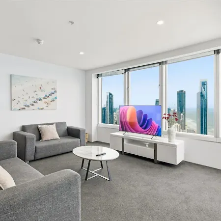 The spacious Ocean View Getaway In Surfers Paradise Gold Coast apartment is nestled in the centre of Gold Coast and is around 20 minutes' walk from the family-friendly park "Cascade Gardens". At the apartment guests can lounge by a private pool or visit the SkyPoint Observation Deck, which is located merely 150 metres away.